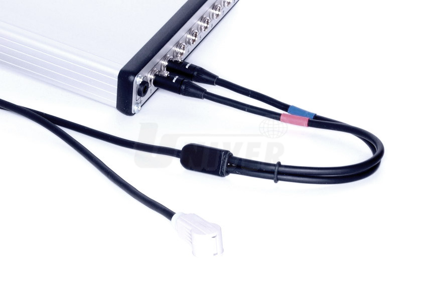 - měřící kabely s interním děličem 1:5, elektrická kapacita měřícího kabelu snižuje vstupní impedanci měřícího zařízeni celkové a představuje zátěž pro objekt měření, zejména pro sběrnice, digitální snímače, impedance kabelu 5X1 s interním děličem je minimálně 3-krát vyšší oproti obyčejnému kabelu bez děliče, proto připojení kabelu 5X1 nezatěžuje objekt měření a je bezpečné pro moderní techniku