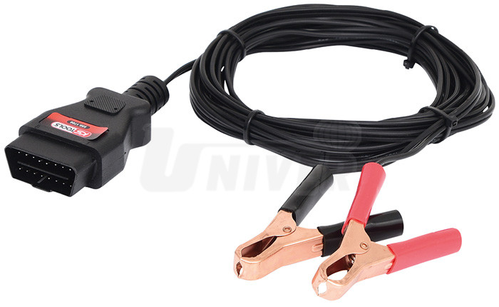 - zapojuje se přímo na přípojku / zásuvku OBD a na druhé straně pomocí kabelů s krokosvorkami na externí baterii 12 V