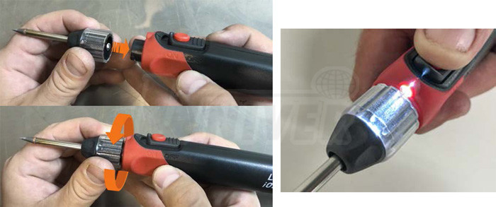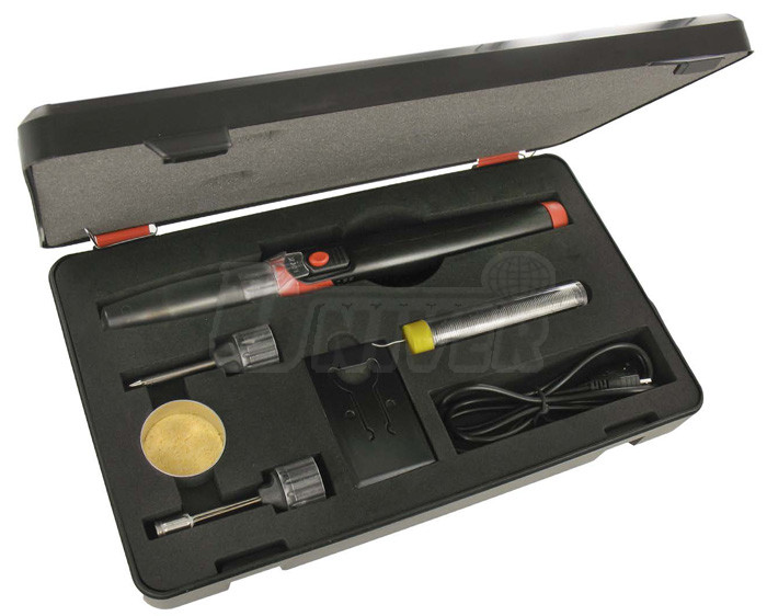 Ruční akumulátorovou pájku 30 W se 3 výměnnými hroty a LED lampou.- perfektní, praktická akumulátorová pájka s příslušenstvím