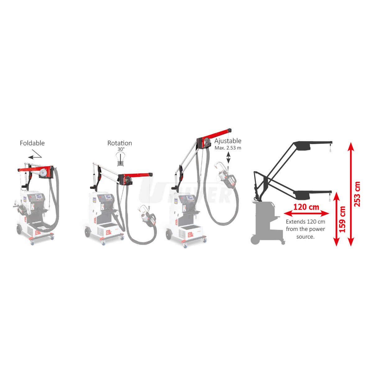 - nastavitelný (akční rádius 120 cm od přístroje, výškově 159 – 253 cm)