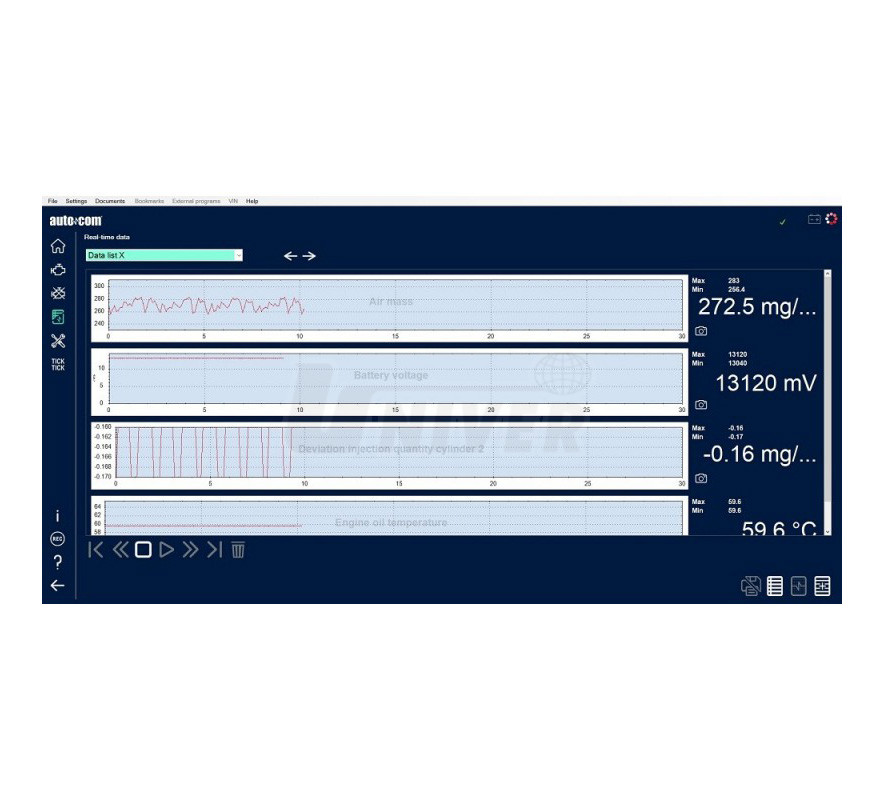 - System Identification / automaticky identifikuje a vybere typ řídící jednotky, když je specifikován model a systém, seznamy dat a data v reálném čase vyčtená ze systémů jsou také na displeji zobrazena