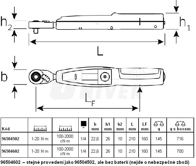 - měrné jednotky: Nm, Ncm, lbft, lbin