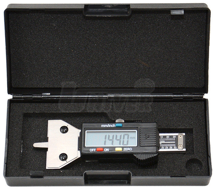 Digitálny hĺbkomer profilu pneumatík s rozsahom 0 - 25 mm z tvrdenej nehrdzavejúcej ocele.Rozsah: 0 - 25 mm