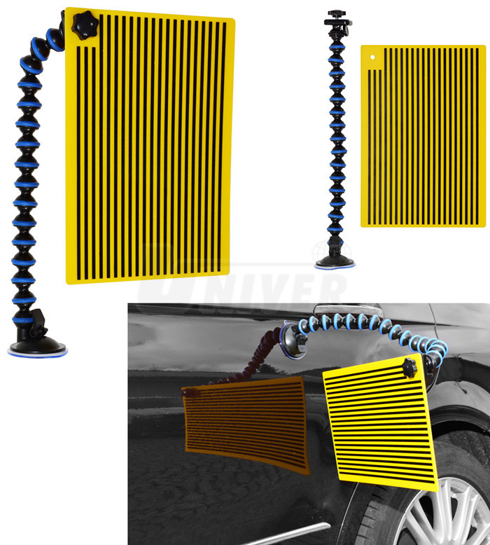 Plastová deska žluté barvy s 21 černými linkami a kloubovým držákem s přísavkou se používá při podsvícení nebo reflexi ke snadnější identifikaci důlků nebo promáčklin na karosérii.- opravy důlků a promáčklin na karosériích vozidel technologií PDR (Paintless Dent Repair) se provádějí pomocí speciálního nářadí a pomůcek za studena bez nutnosti provádět konvenční tmelení, broušení a lakování poškozeného místa, přičemž oprava vyžaduje méně času a je levnější