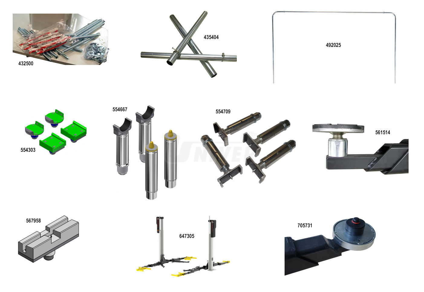 554667 Úchyty pro vozy MB Sprinter / VW Crafter, sada obsahuje 2 ks pro přední a 2 ks pro zadní nápravu, pro dvousloupové zvedáky s nosností vyšší než 4,5 t