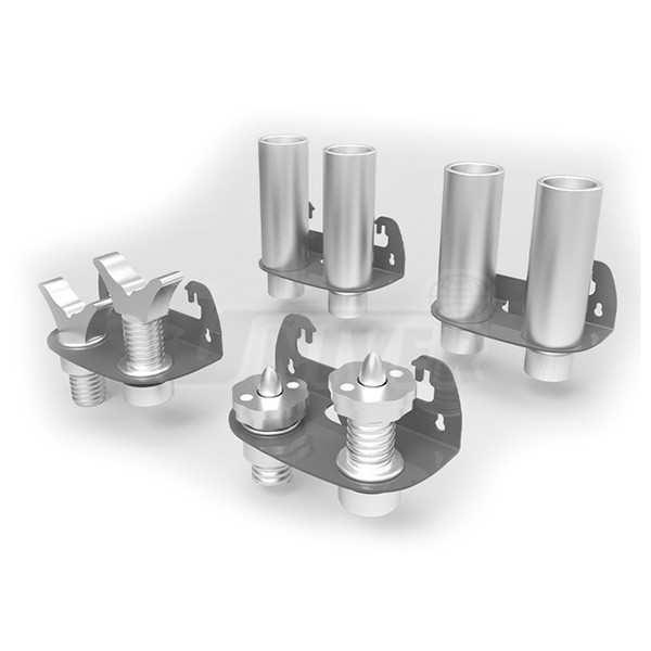 TPL7500-LS01 sada nástavců pro bezpečné zvedání vozů Mercedes Sprinter, které lze zastrčit do kloubových ramen nebo do nástavců nosných ramen TPL-SWE250 nebo TPL-SWE400, sada obsahuje: 2 bodová uchycení / podpěry s nastavením vřetena 60 mm, 2 uchycení / podpěry tvaru U/V s nastavením vřetena 60 mm. 4 distanční kusy, délka 200 mm, hliník, držáky (nerezová ocel) pro podpěry a distanční kusy k zavěšení na sloup TPL7500 … € 1 080,00
