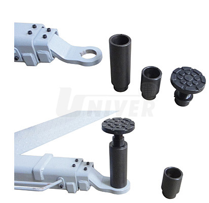 - asymetrická, variabilně nastavitelná nosná ramena (výsuvná a kloubově natáčecí) s automatickou aretací polohy jejich natočení, snadno tak lze dosáhnout zvedací body u menších i velkých automobilů