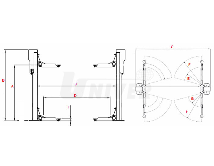 | Průjezdná šířka zvedáku (D) | 2390 mm |