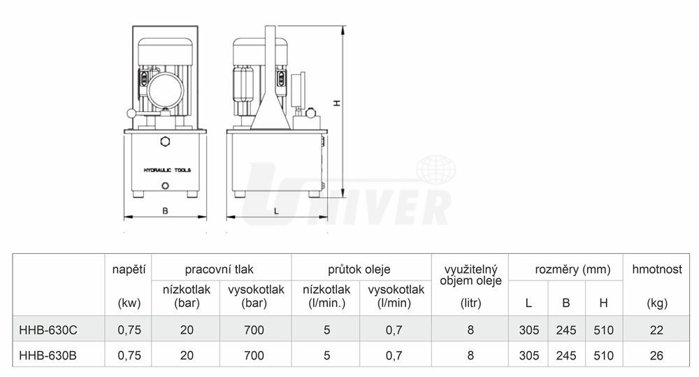 Elektrická hydraulická pumpa s tlakomerom HHB-630B