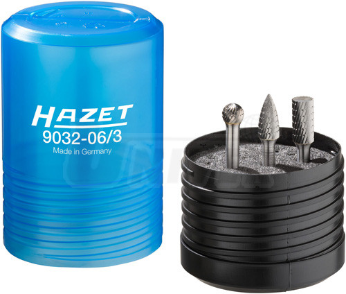3 tvrdokovové frézovací kolíky s frézami válcového, kuželového a kulového tvaru s dříky Ø 6 mm pro univerzální použití v kovoobrábění téměř všech materiálů