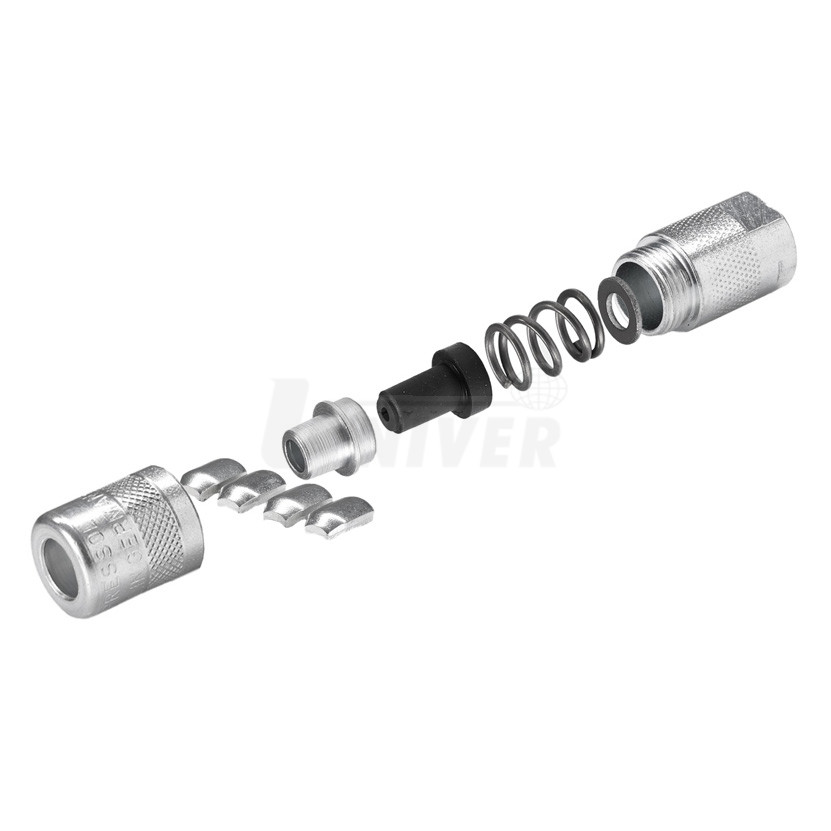 12 726 - extra tenká precizní 4-čelisťová hydraulická mazací hubice pro kuželovité mazací hlavice (H), vnitřní závit G 1/8", kovaná pozinkovaná ocel, Ø 13 mm, délka 42 mm, na klíč 13 mm