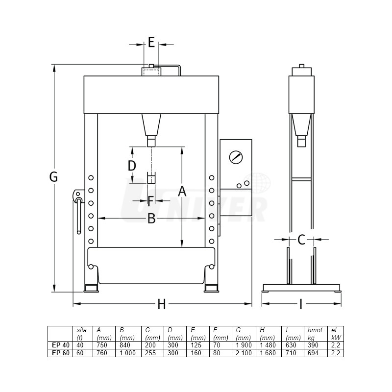 COMPAC EP 60 Elektro-hydraulický dílenský lis 60 t