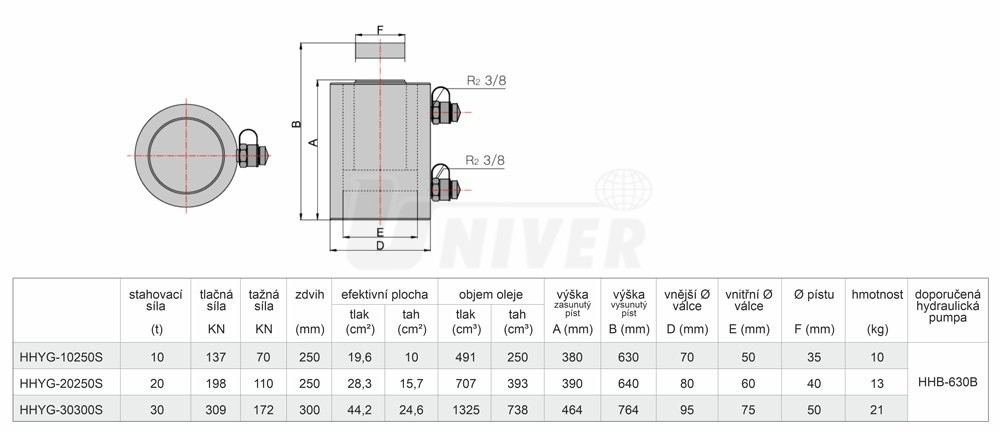 HHYG-10250S Hydraulický dvojčinný válec 10 t na objednávku