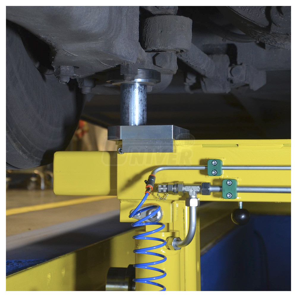 - plne automatická prevádzka, dvojčinný systém: superrýchly zdvih do kontaktu s vozidlom (alebo s jeho agregátmi) a tiež spúšťanie pneumatické, zdvíhanie vozidla pomocou pneumatického čerpadla