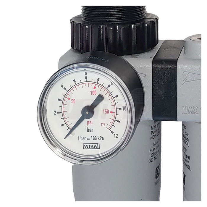 Modulová jednotka pro úpravu stlačeného vzduchu 1/4" sestává ze tří částí (regulátor tlaku, filtr s odlučovačem vody a olejovač), které jsou doplněné o tlakoměr.- kompaktní provedení (minimální zástavbové rozměry) pro instalaci i v omezeném prostoru