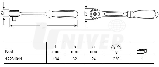 Jemná ráčna 3/8", 60 zubů, pracovní úhel jen 6°, vynikající pro práci ve stísněném prostoru.