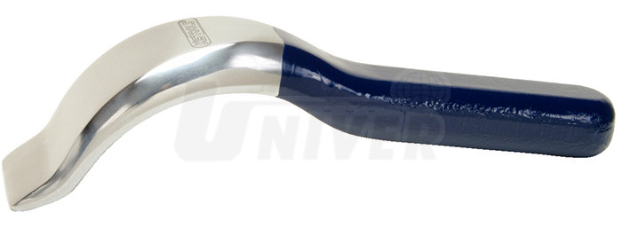 Karosářská vyklepávací lžíce konturovací dl. 240 mm s modře lakovanou rukojetí, s broušenými a leštěnými pracovními plochami.- materiál: konstrukční ocel C45, HRC 30 ± 3