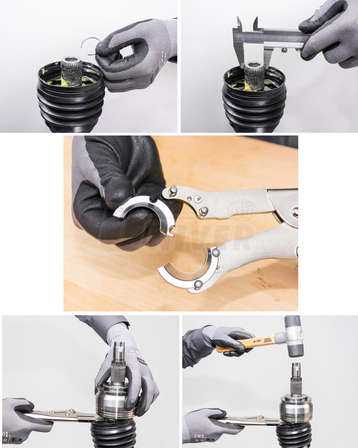 - pro snadnější montáž kloubů na hnací hřídele bez poškození ozubení kloubu a hřídele s uvnitř instalovaným pojistným kroužkem a bez poškození vlnovce / manžety