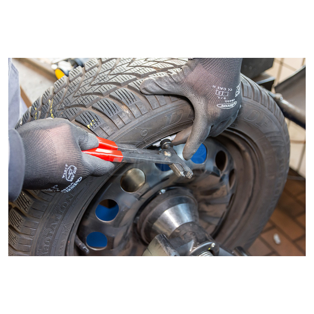 Kleště na uvolnění a upevnění vyvažovacích tělísek / závaží (nalepovací i naklepávací).