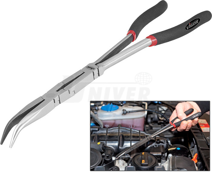 Kliešte s polguľatými čeľusťami a zdvojeným kĺbom VIGOR V2782