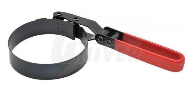 Páskový klíč na olejové filtry s vinylovým krytím rukojeti a s kloubem má nastavitelný upínací pásek otočný o 180°, což zajišťuje optimální polohu upnutí i v stísněném prostoru.Rozsah upnutí olejových filtrů činí 73 - 85 mm.