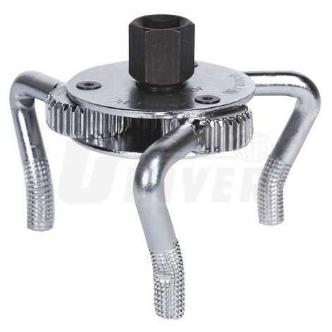 Nastavitelný klíč na demontáž olejových filtrů o průměru 43 až 102 mm z pochromované oceli se 3 čelistmi a připojovacím čtyřhranem 3/8" a 1/2".- praktický, nastavitelný klíč na demontáž olejových filtrů motorů