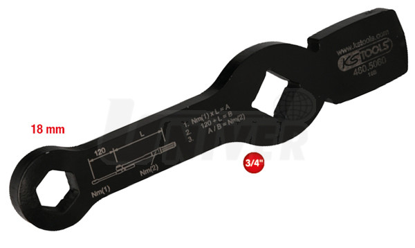 Úderový / rázový klíč na šrouby třmenů kotoučových brzd nákladních automobilů a autobusů se šestihranem 18 mm a vnitřním čtyřhranem 3/4".- úderový / rázový klíč se šestihranem 18 mm a vnitřním čtyřhranem 3/4" pro snadné povolování a utahování šroubů třmenů kotoučových brzd zadních náprav nákladních automobilů a autobusů