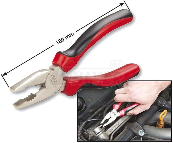 Kombinované kleště jsou vyrobeny ze speciální oceli. Mají délku 180 mm a dvoukomponentní ergonomické rukojeti, což umožňuje vysoký přenos síly na čelisti. Používají se jak pro přidržování, tak i pro štípání.