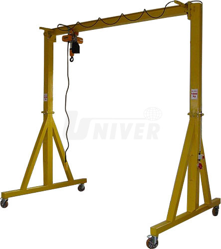 s elektrickým kladkostrojem a ručním pojezdem, nosnost 1000 kg, světlá šířka 3000 mm, celková výška 3500 mm.