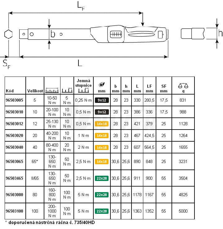 - velmi dobře čitelná zdvojená stupnice s barevným rozlišením Nm / ft.lb