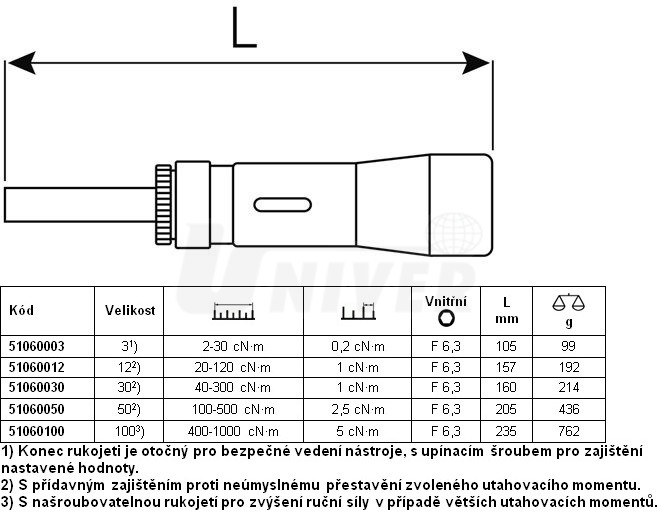 - pro momentově kontrolované utahování šroubu v rozsahu cNm a in.Lb