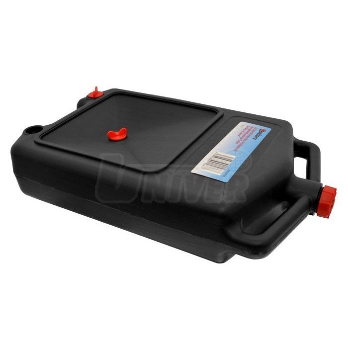 Přenosná uzavíratelná plastová nádoba o objemu 10 l k zachycení vyjetého oleje a k jeho následnému přenášení a snadnému vylití díky praktickým držadlům.- přenosná nádoba / vana o objemu 10 l k zachycení vyjetého oleje a dalších kapalin