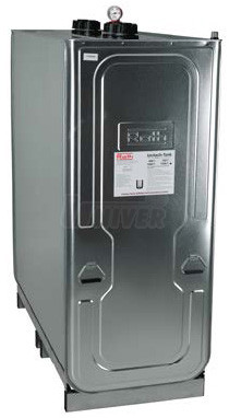 1500 l ocelový plech, žárově zinkovaný HDPE (polyetylén vysoké hustoty) 4 x G 2" vnitřní, sudové šroubení 1630 x 755 x 1870 165 kg |