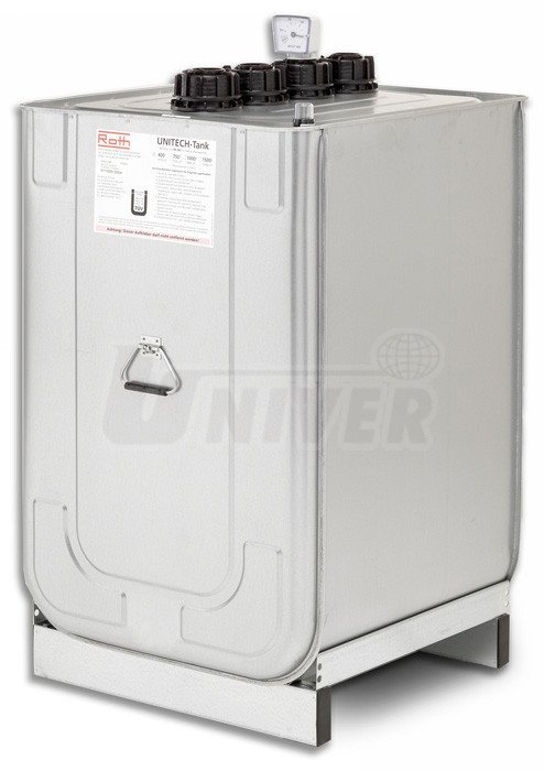 400 l ocelový plech, žárově zinkovaný HDPE (polyetylén vysoké hustoty) 4 x G 2" vnitřní, sudové šroubení 730 x 700 x 1180 mm 50 kg |