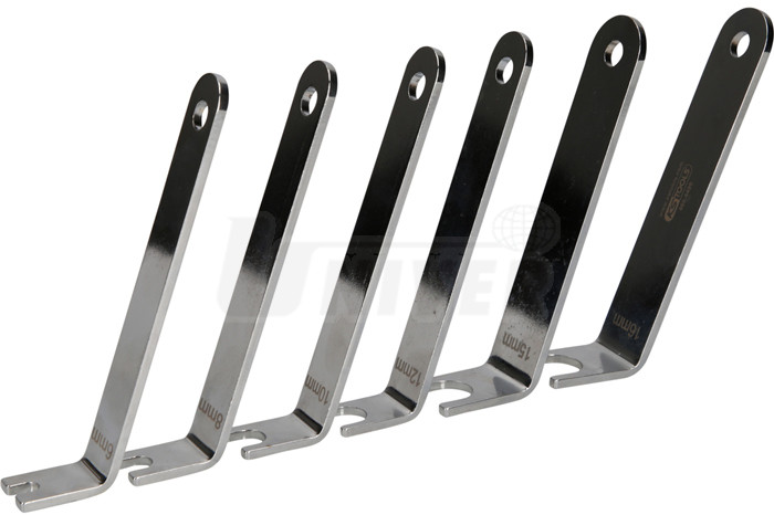 6-dílná sada nástrojů pro uvolnění rychlospojek vedení stlačeného vzduchu vzduchotlakých brzd průměru 6 - 16 mm.- sada 6 speciálních nástrojů / přípravků pro uvolnění rychlospojek vedení stlačeného vzduchu vzduchotlakých / pneumatických brzd užitkových vozidel