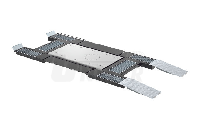 Pneumatický zvedák o nosnosti 3,5 t a výšce zdvihu 1160 mm s plošinami pro zvedání automobilů za kola je určený pro pro instalaci do úrovně s podlahou / do podlahy.
