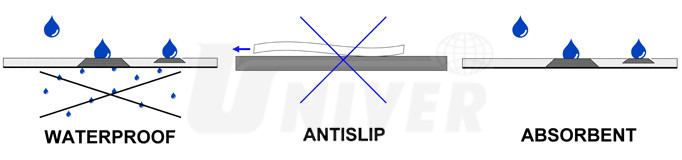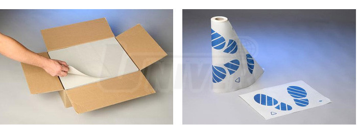 Ochranné koberečky jsou vytvořeny z materiálu PAPERPLAST (spodek z fólie, vrchní část speciální papír).- snadno absorbují vodu, ale nepropouští ji