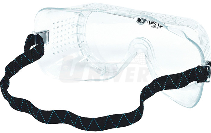 Uzavřené transparentní ochranné pracovní brýle, přímo větrané, s nárazuvzdorným polykarbonátovým zorníkem, s lícnicí ze změkčeného PVC a s nastavitelným elastickým upínacím páskem.- materiál: nárazuvzdorný polykarbonát - zorník, měkčené PVC - rám / lícnice