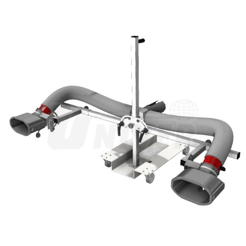 Trychtýř pro odsávání výfukových plynů mají vyústění na výfuk Ø 160 mm, 2 hadice Ø 100 mm, Y-kus a pojízdný nastavitelný stativ.- 2 odsávací trychtýře EURO PROFI oválného tvaru ze speciální pryže