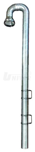 Ocelové trychtýře pro odsávání výfukových plynů vozidel se svislým výfukovým potrubím mají délku 2,5 m, uzavírací klapku s poziční tyčí, držadla a příruby pro odsávací hadici Ø 125 / 150 mm.