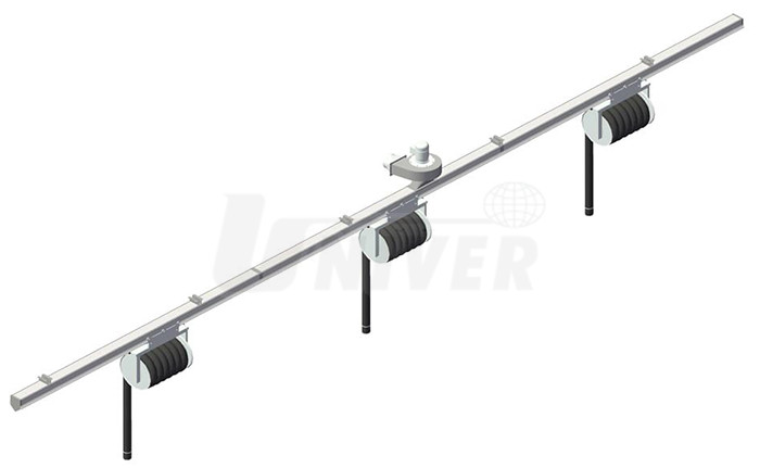 Linky pro odsávání výfukových plynů tvoří odsávací kanál, 3 odsávací vozíky, 3 navijáky s hadicí bez trychtýře a ventilátor připojený přímo na profil kanálu.- 9 kompletů linek pro odsávání výfukových plynů s odsávacím kanálem GAT1 v délce 8 až 24 m, vždy se 3 odsávacími vozíky s odsávací hadicí Ø 75 až 100 mm a délky 7,5 m a s odsávacím ventilátorem 1,1 až 1,5 kW instalovaným přímo na profil kanálu
