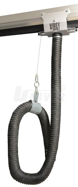 Odsávací vozíky pro instalaci na štěrbinových kanálech GAT1 vybavené odsávací hadicí GT2 (do 200°C) a kabelem, který nese manžetu zavěšení hadice.- vozíky se instalují na štěrbinové kanály GAT1 a umožňují snadný pohyb po kolejnicovém vedení umístěném na odsávacím kanálu