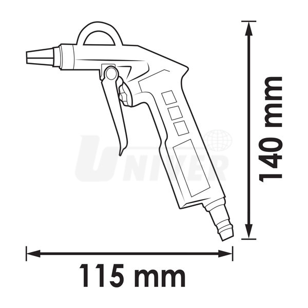 Krátká ofukovací pneumatická pistole pro rychlé odstraňování nečistot.- odolné hliníkové pouzdro