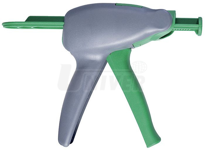 Speciální vytlačovací pistole pro zdvojené kartuše 50 ml se směšovacím poměrem 1:1.Tyto kartuše se směšovacími trubičkami/nástavci ve spojení s touto pistolí zajišťují správný směšovací poměr obou komponentů lepidel, což je důležité pro optimální výsledek lepení.
