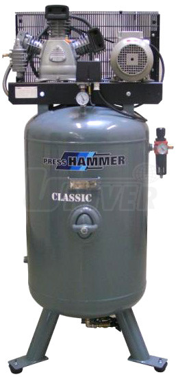 Pístové kompresory se stojatými vzdušníky. Jsou osvědčenými pomaloběžnými zdroji stlačeného vzduchu české výroby do provozů, kde je stlačený vzduch používán denně. Jsou oblíbené jako stacionární zdroje stlačeného vzduchu především pro malé zástavbové rozměry. Žádné odlehčené hliníkové skořepiny, ale kvalitní litinové agregáty, motory IE2, tlakové spínače Condor a další komponenty od renomovaných výrobců jsou zárukou vysoké kvality a spolehlivosti. Dvouválcové nebo tříválcové kompresory v různých tlakových variantách pro úsporu místa na stojatém stacionárním vzdušníku vynikají nízkou hlučností.Všechny kompresory je možné vybavit redukčním ventilem s rychlospojkou, filtrem pevných částic od 5 mikronů a nádobkou na zachycení kondenzátu. Všechny pojistné armatury, elektrický kabel se zástrčkou a nadproudovou ochranou jsou součástí kompresoru. V ceně kompresoru je tak vše potřebné pro jeho okamžitý, bezproblémový provoz s dlouhou životností.