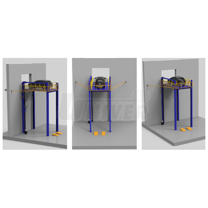 Plošinový štvorstĺpový hydraulický výťah pre automobily s nosnosťou 4 t s výškou zdvihu 10 500 mm s výťahovou plošinou bez kabíny alebo s kabínou.- kvalitný hydraulický motor Lisheng (voliteľne aj značky ABB alebo Siemens)