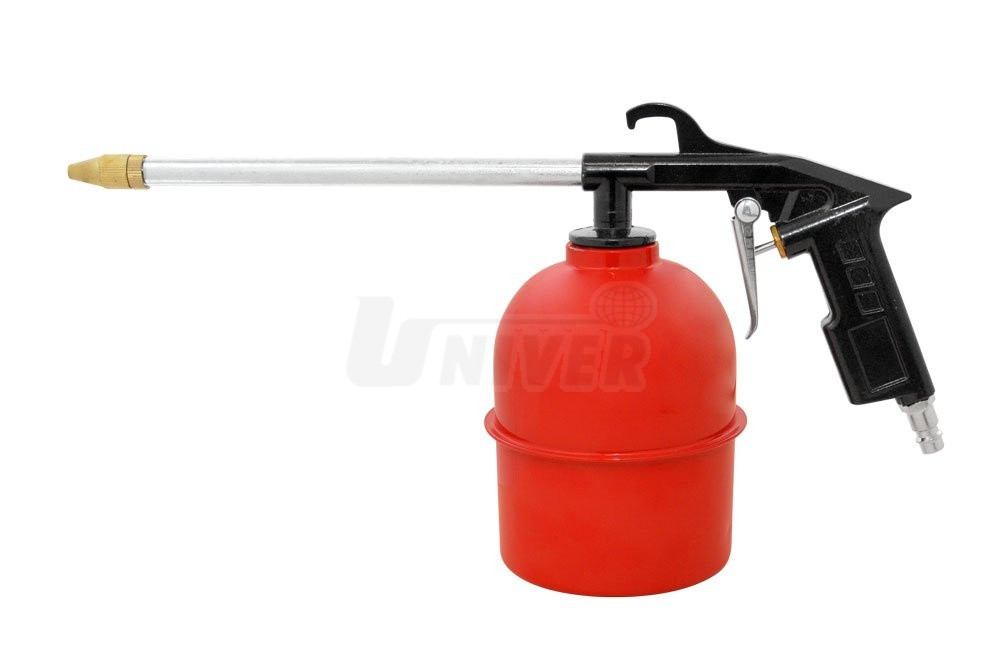 Pneumatická rozprašovací pistole se spodní nádržkou pro univerzální použití na tlakové čištění, údržbu nebo antikorozní ošetření zejména v autoservisech, pneuservisech, karosárnách, lakovnách, v myčkách aut, ale také při zahradních pracích.- univerzální pneumatická stříkací / mlžící pistole pro mnohostranné využití: čištění proudem roztoku mycích a čisticích prostředků (ideální např. i pro čištění motoru apod.), rozprašování lehkých olejů, antikorozní ošetření, rozprašování přípravků při zahradních pracích apod.