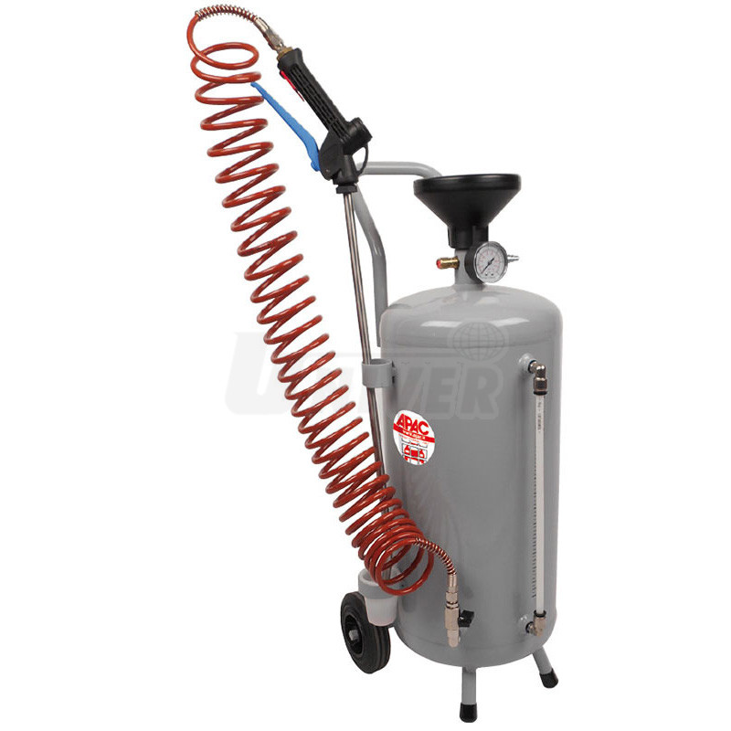 Pojízdné pneumatické postřikovače se 3 velikostmi zásobníků s tlakoměry na kapalné mycí / čisticí prostředky o objemu 10 / 24 / 50 l s 5 m-hadicí s pistolovou kovovou tryskou.- zásobníky jsou vybaveny tlakoměry, přetlakovými ventily a ukazateli hladiny kapaliny