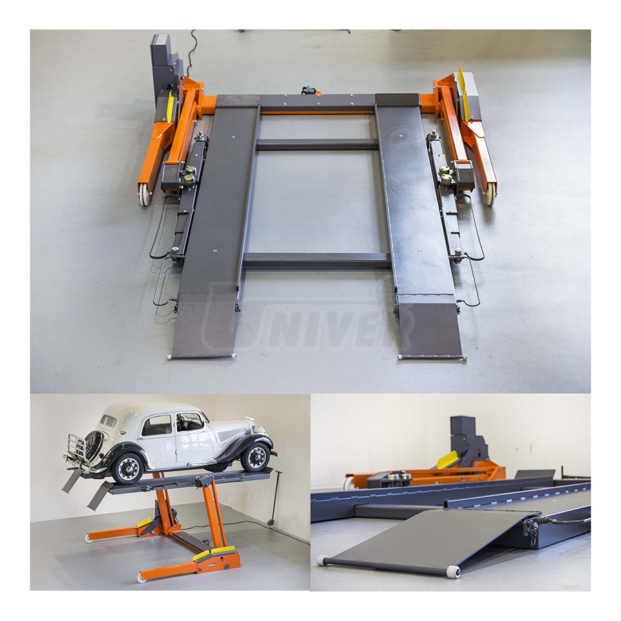 FHB3000-FA3-2300 2 nosné plošiny, použití např. na přímém příjmu automobilů nebo pro zvedání veteránů apod.(nosnost 2 750 kg, nosné plošiny, délka 3 500 mm, šířka 430 mm, výška 110 mm, vzdálenost mezi plošinami minimálně 700 mm, hmotnost plošin 270 kg, barva plošin šedá RAL7015) ... € 2 920,00
