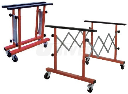 Víceúčelový pojízdný stojan lze nastavovat jak do výšky, tak zejména do šířky, složit ho a opět roztáhnout, má 4 kolečka s brzdami a nosnost 100 kg.- speciální pojízdný rozkládací a skládací stojan s výškovým nastavením a nosností 100 kg